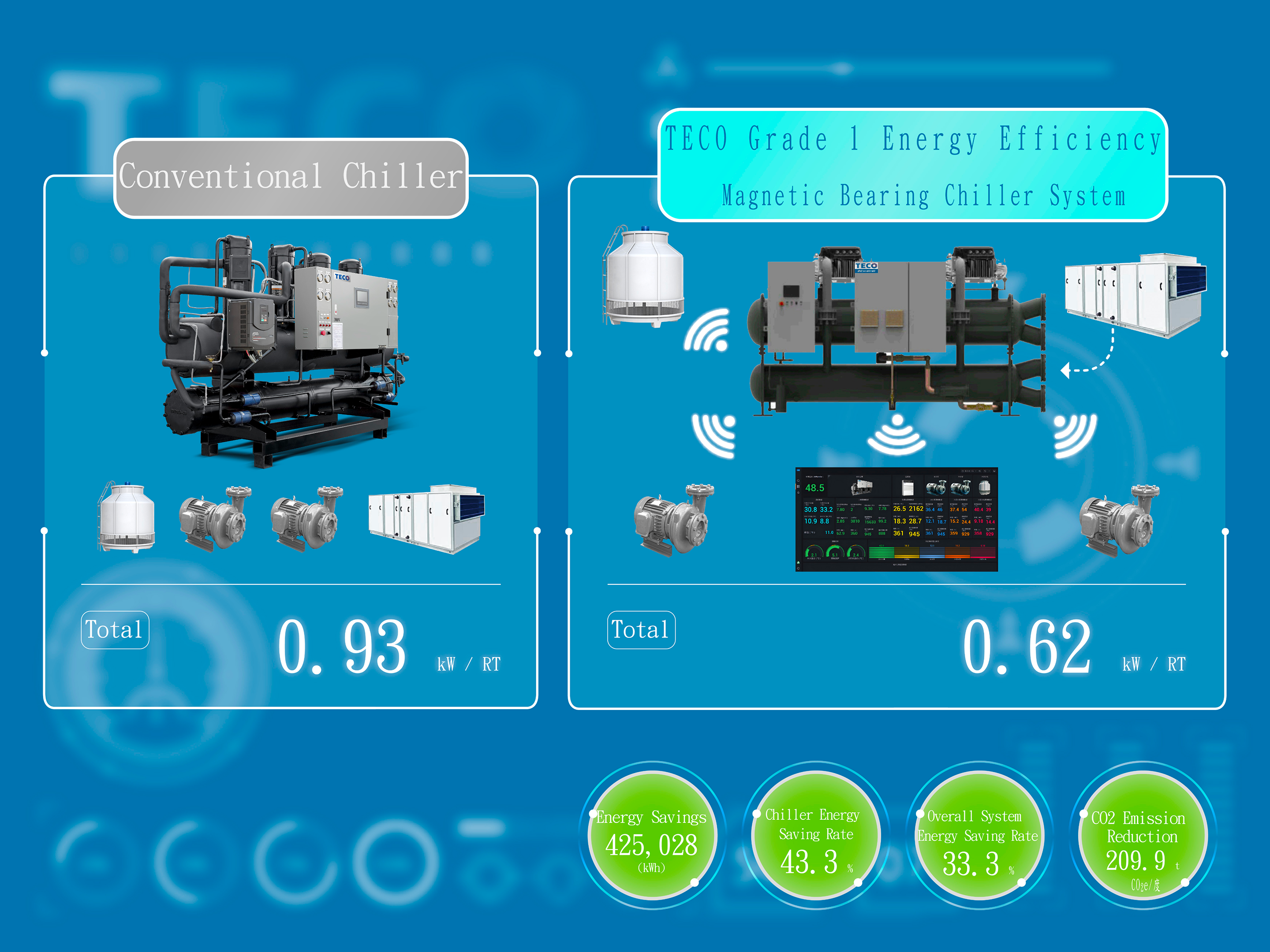 even at loads as low as 10%. Across different applications and operating conditions, it consistently delivers high performance, realizing the full potential of AI-enabled energy-saving chillers.