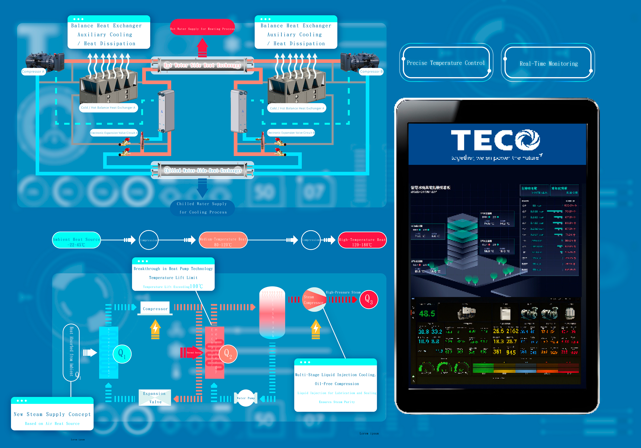 and heating, meets precise environmental requirements, lowers operational costs, reduces carbon emissions, and minimizes capital expenditure.