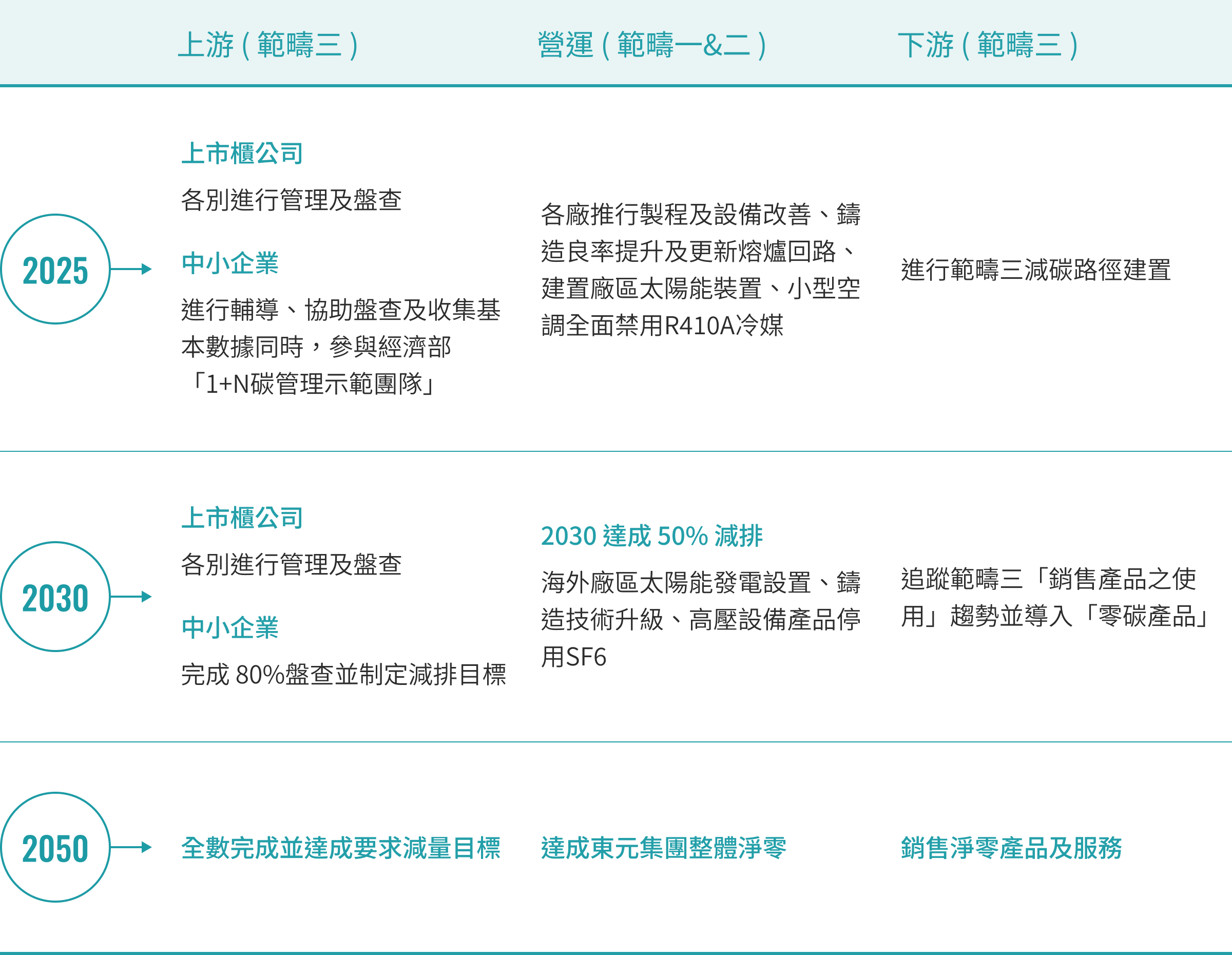 • 环境 - 2050达到净零排放为东元最终目标,重要的是具体措施。